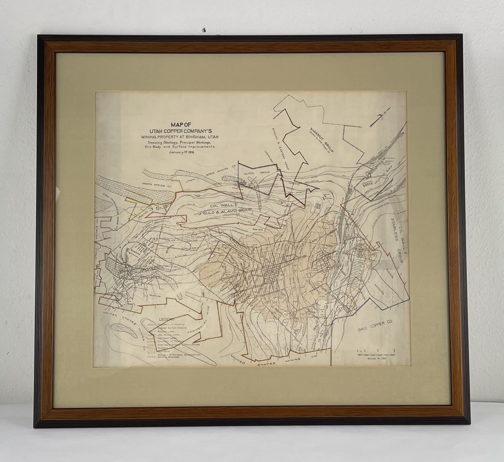 Bingham Utah. Showing Geology, Principal Workings, Ore Body and Surface Improvements. January 1st 1916. 29" by 32" framed.