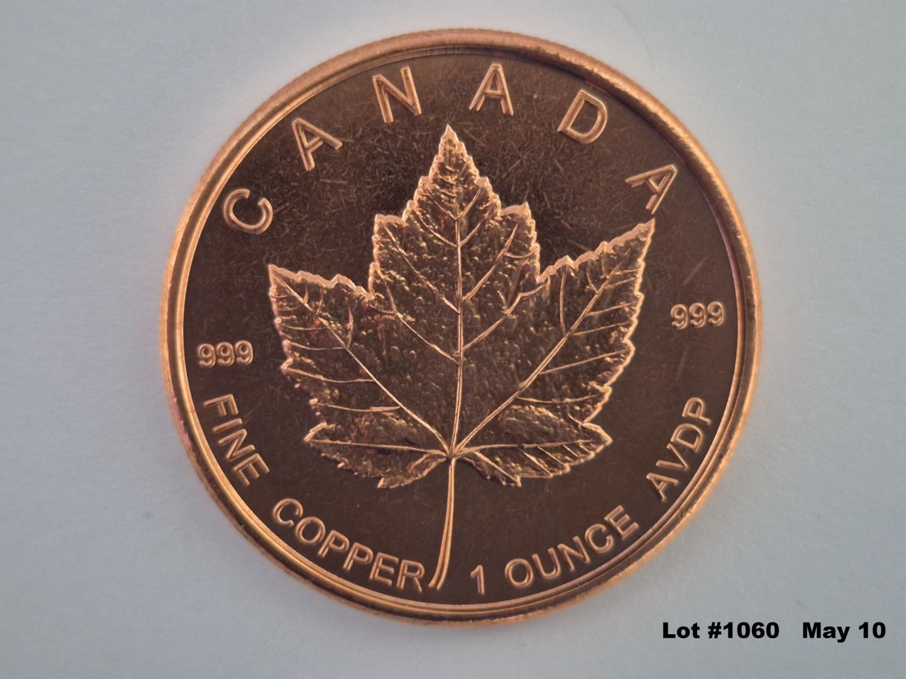 "Maple Leaf" Copper Coin -1 oz .999 Fine Copper