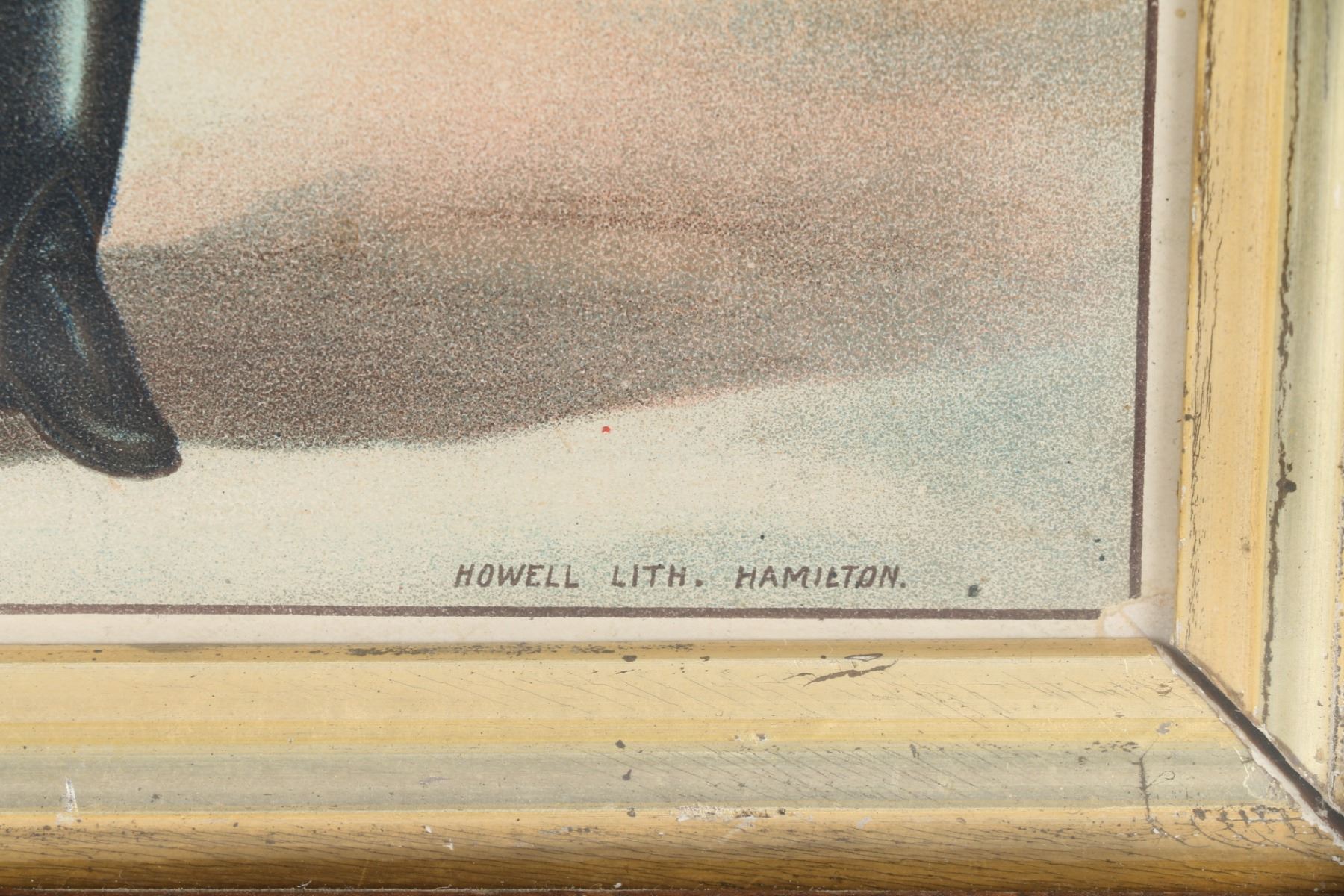 Canadian. Circa 1900. Very rare. Marked "Howell Lith. Hamilton", lower right edge. Framed cardboard under glass. 15" x 13.5" No restoration. Faint crease from upper right mounting hole to lower edge. $800-1200.