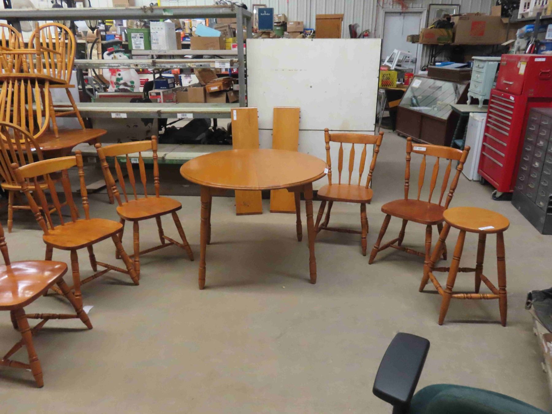 Maple Table 29'' x 40'' Across with (2) 10'' Leaves , 5 Chairs & Stand