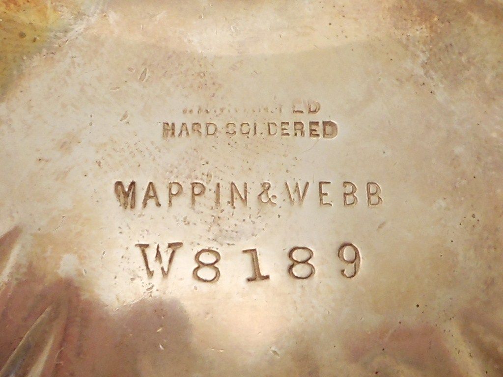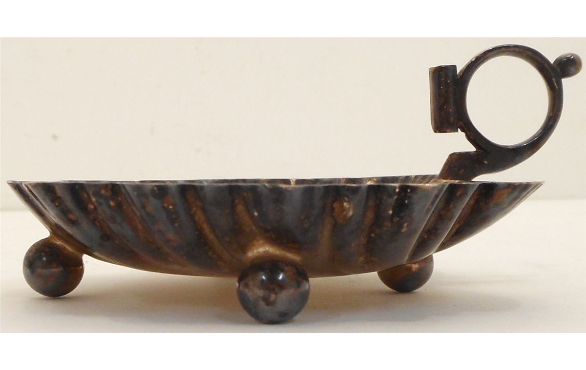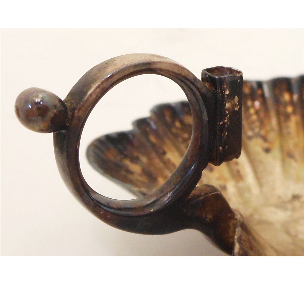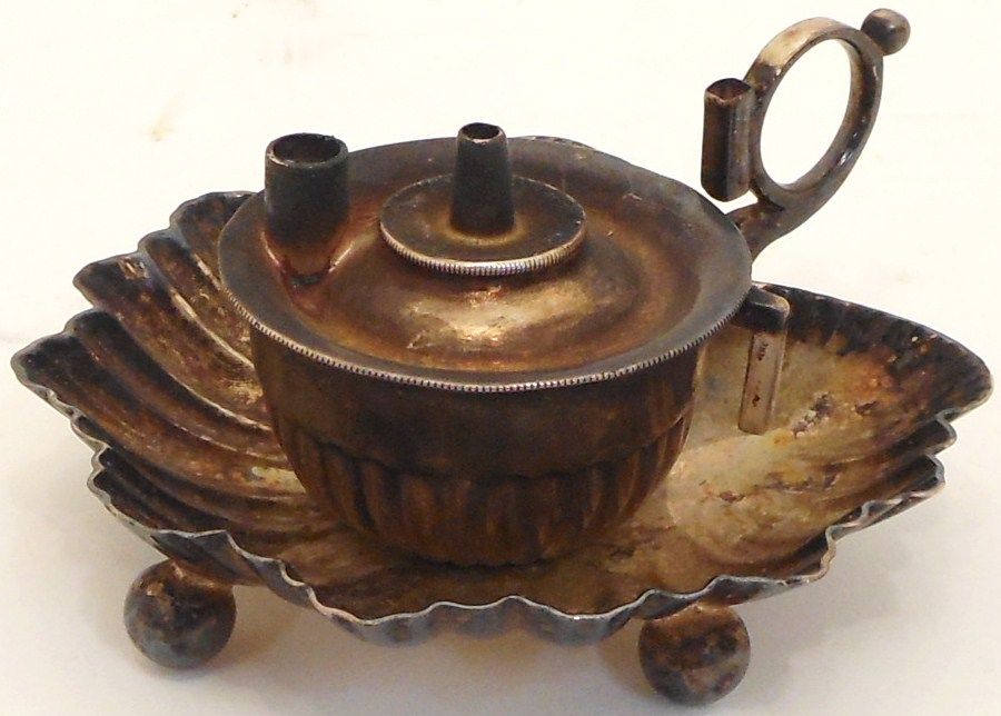 Base is 4 1/4" X 3 3/4" and Lamp is 2 1/2" Diameter and 1 3/4" Tall. Mappin and Webb Silver-plate Shell Design Fat Lamp. Great condition with minor signs of wear and needs polished. (See Pictures)