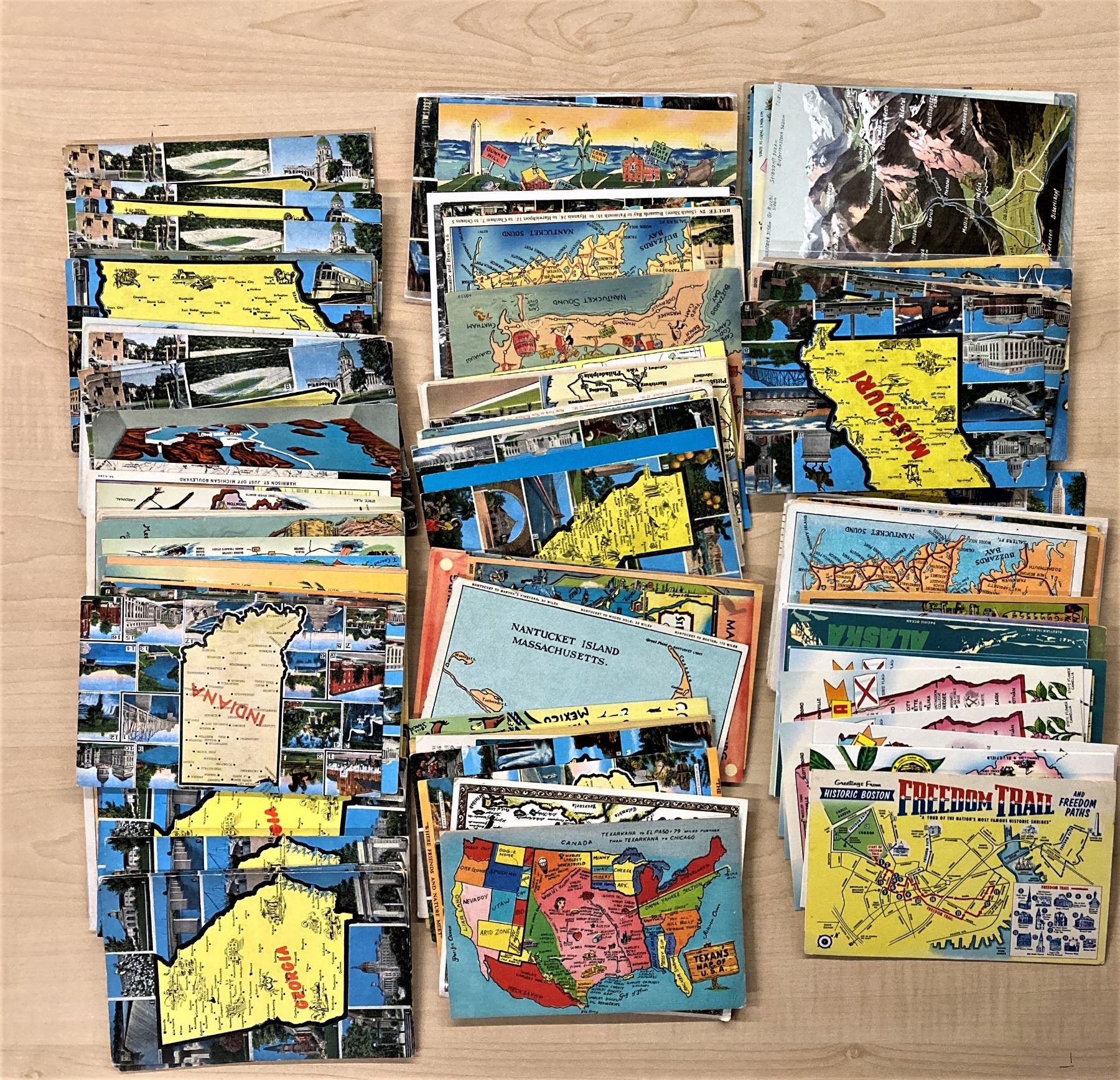 From all over the USA, some international. Mostly linen to standard size chrome, some continentals. 350+ cards. Pictures shown are just a portion of the lot.