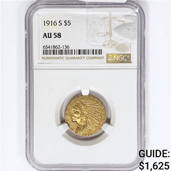 1916-S $5 Gold Half Eagle NGC AU58