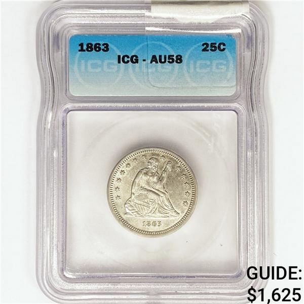 1863 Seated Liberty Quarter ICG AU58