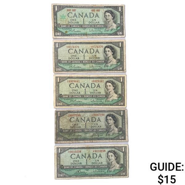 1954-1967 Canada $1 Bank Notes (5 Items)
