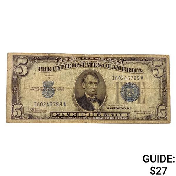 1934A US $5 Silver Cert.