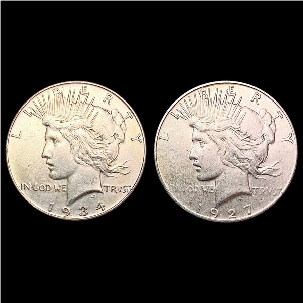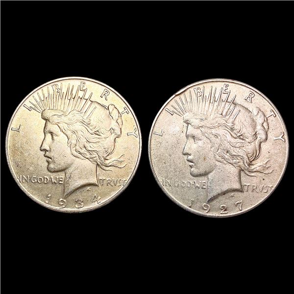 [2] Peace Silver Dollars [1927-S, 1934] CLOSELY UN