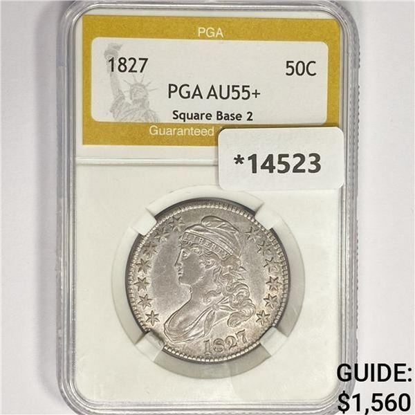 1827 Capped Bust Half Dollar PGA AU55+ Sq Base 2