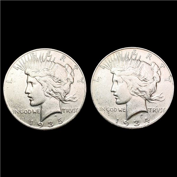 [2] Peace Silver Dollars [1934-D, 1935-S] CLOSELY