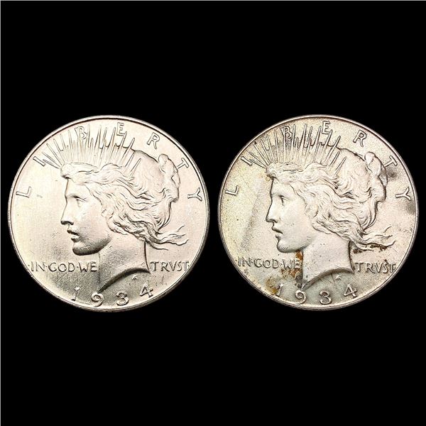 [2] Peace Silver Dollars [1934, 1934-D] CLOSELY UN