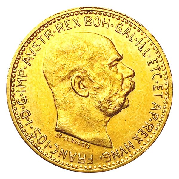 1909 Austria .098oz Gold 10 Corona CLOSELY UNCIRCU