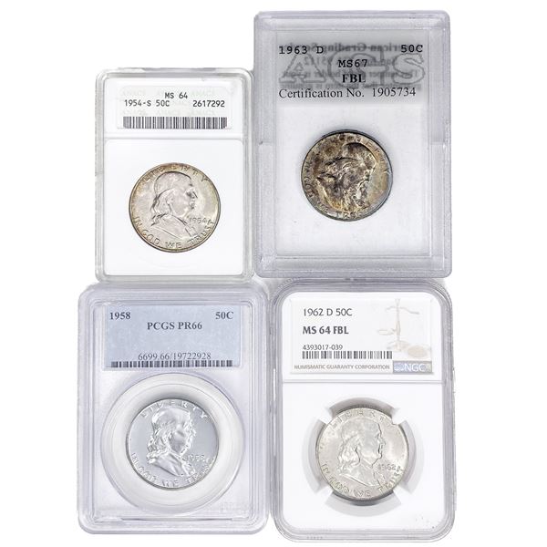 [4] Franklin Half Dollars MS/PR [1954-S, 1958, 19