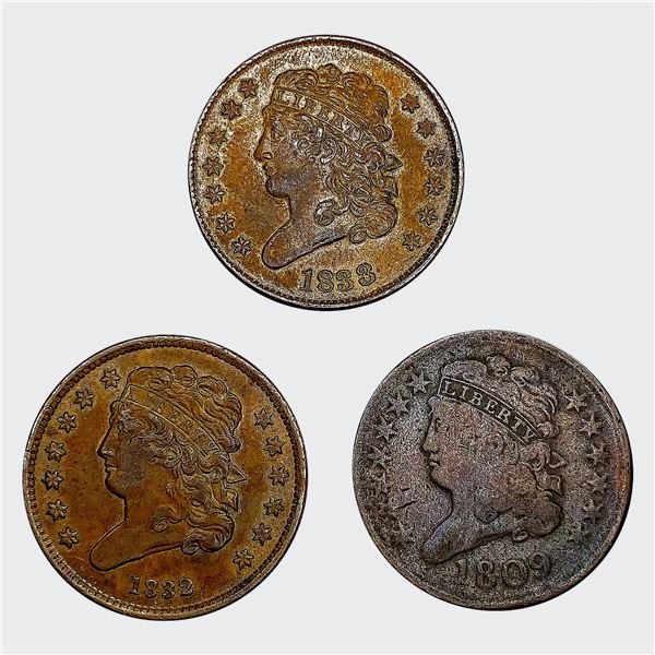 1804 Draped Bust Half Cents Diff. Varieties [3 Coi