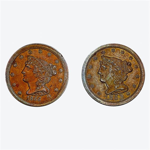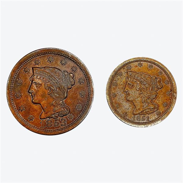 1851, 1853 Braided Hair Cent, Half Cent [2 coins]