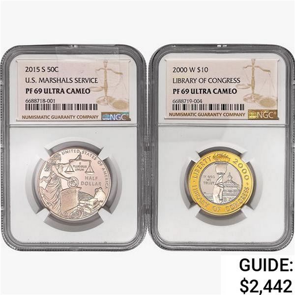 [2] US Commem Coinage w/ 1oz Plat & Gold Bimetalli