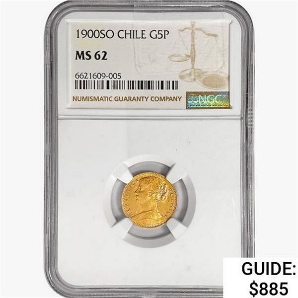 1900SO Chile 5 Pesos .0883oz. Gold NGC MS62