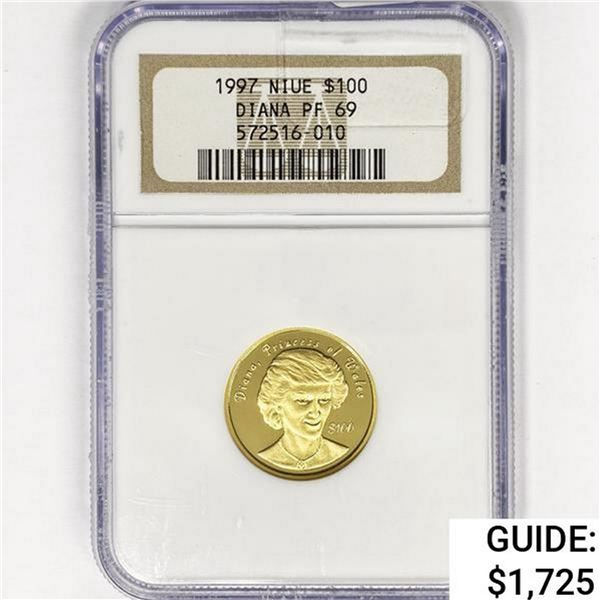1997 $100 NIUE 6.3g Diana Gold NGC PF69