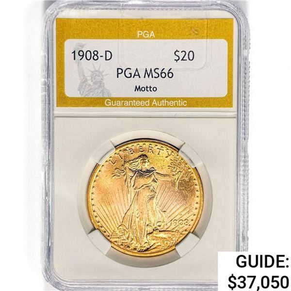 1908-D $20 Gold Double Eagle PGA MS66 Motto