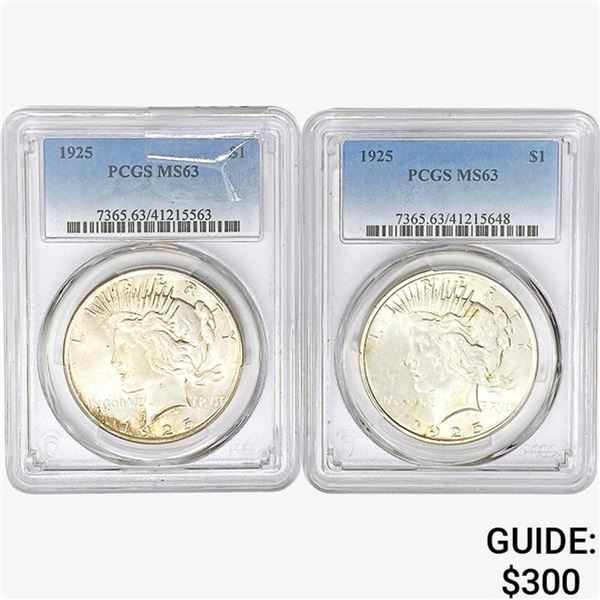 [2] 1925 Peace Silver Dollars PCGS MS63