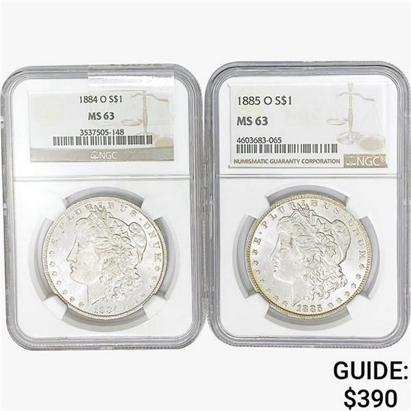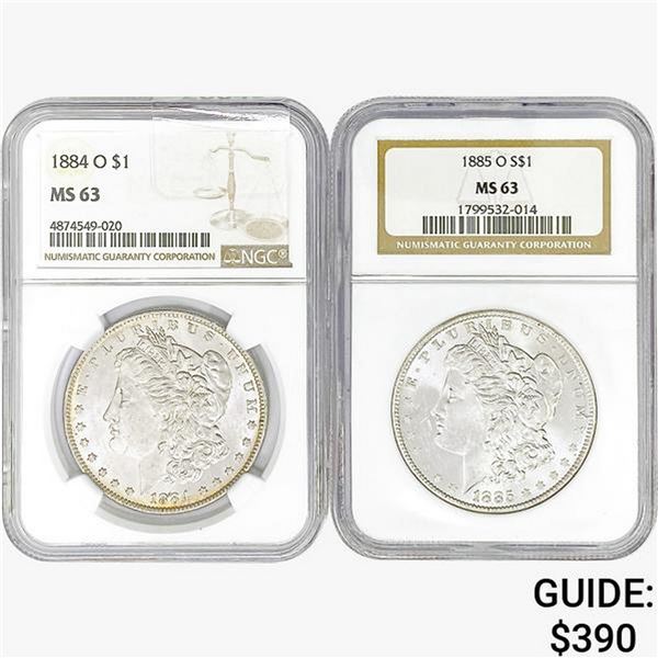[2] Morgan Silver Dollars NGC MS63 [1884-O, 1885-O