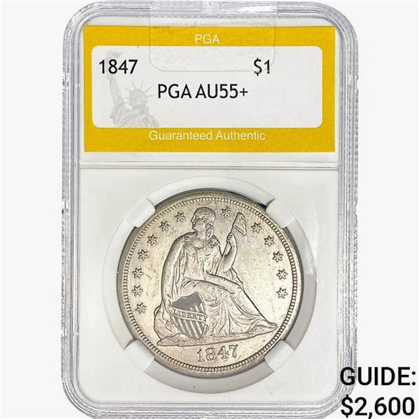 1847 Seated Liberty Dollar PGA AU55+
