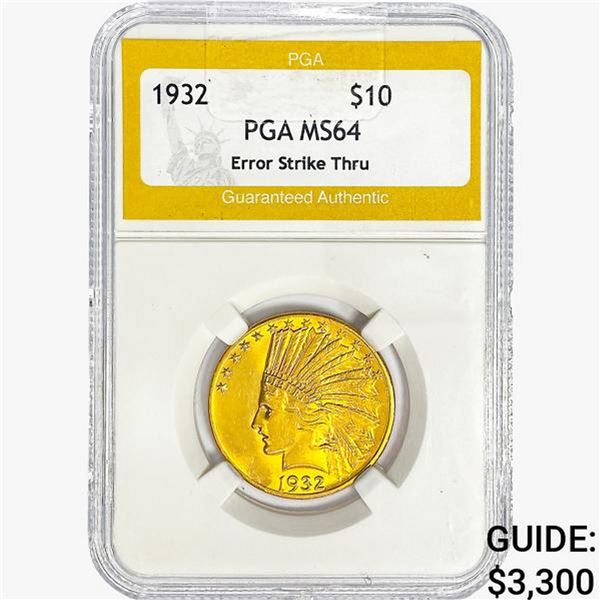 1932 $10 Gold Eagle PGA MS64 Error Strike Thru