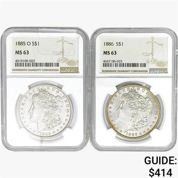 [2] Morgan Silver Dollars NGC MS63 [1885-O, 1886]