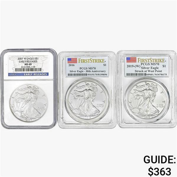[3] American 1oz Silver Eagles NGC/PCGS MS69-70 [2