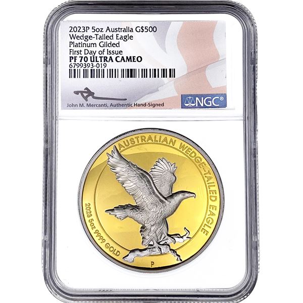 2023 AUS 5oz GLD Wedge EAG Gilt NGC PF70 UC FDI