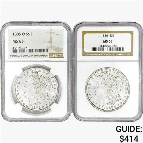 [2] Morgan Silver Dollars NGC MS63 [1885-O, 1886]