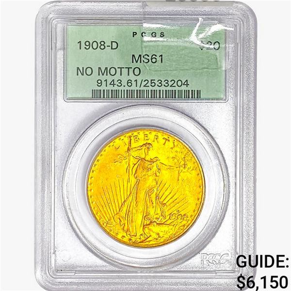 1908-D $20 Gold Double Eagle PCGS MS61 No Motto
