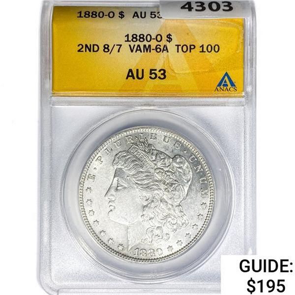 1880-O 2ND 8/7 Morgan SILV $1 ANACS AU53 VAM-6A