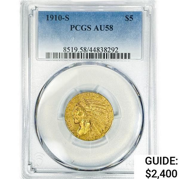 1910-S $5 Gold Half Eagle PCGS AU58