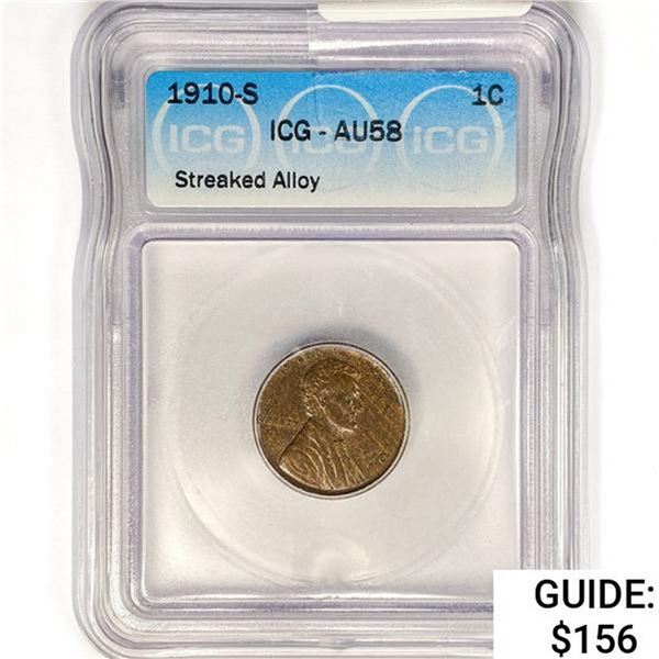1910-S Wheat Cent ICG AU58 Streaked Alloy