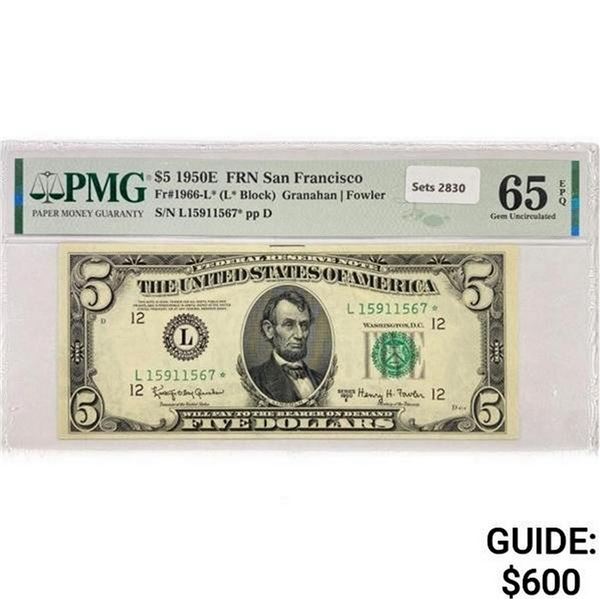 1950 $5 Fed Reserve Note PMG GEM UNC 65