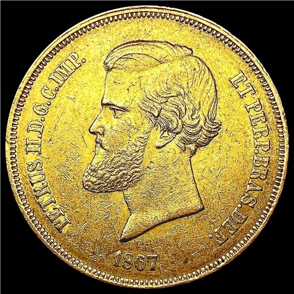 1867 Brazil .5286oz Gold 20000 Reis CLOSELY UNCIRC