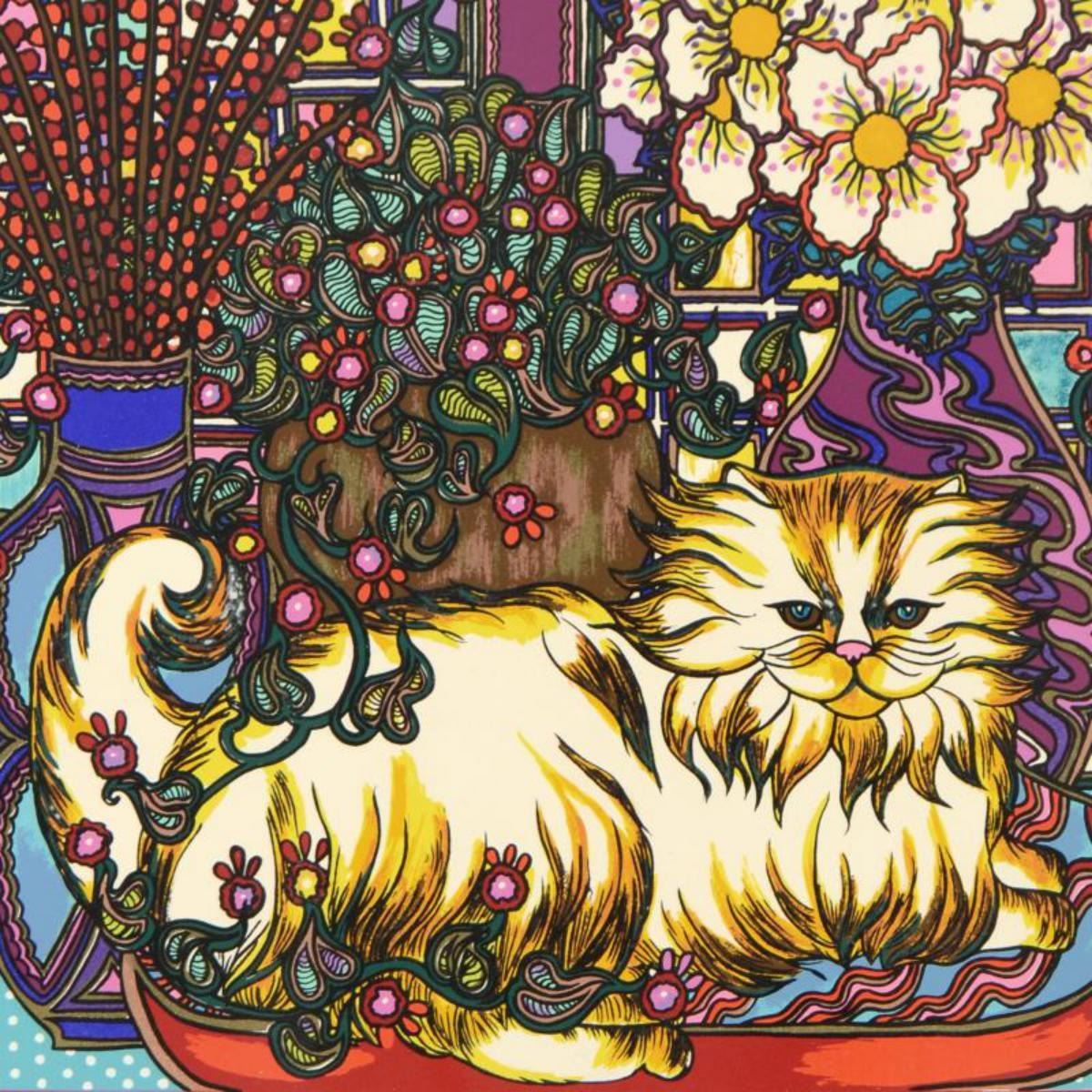 "Stained Glass Cat" is a limited edition lithograph on paper by Mara Abboud numbered and hand signed by the artist. Includes Letter of Authenticity. Measures approx. 30.5" x 31" (border), 25" x 25" (image). Reference #: 231107.