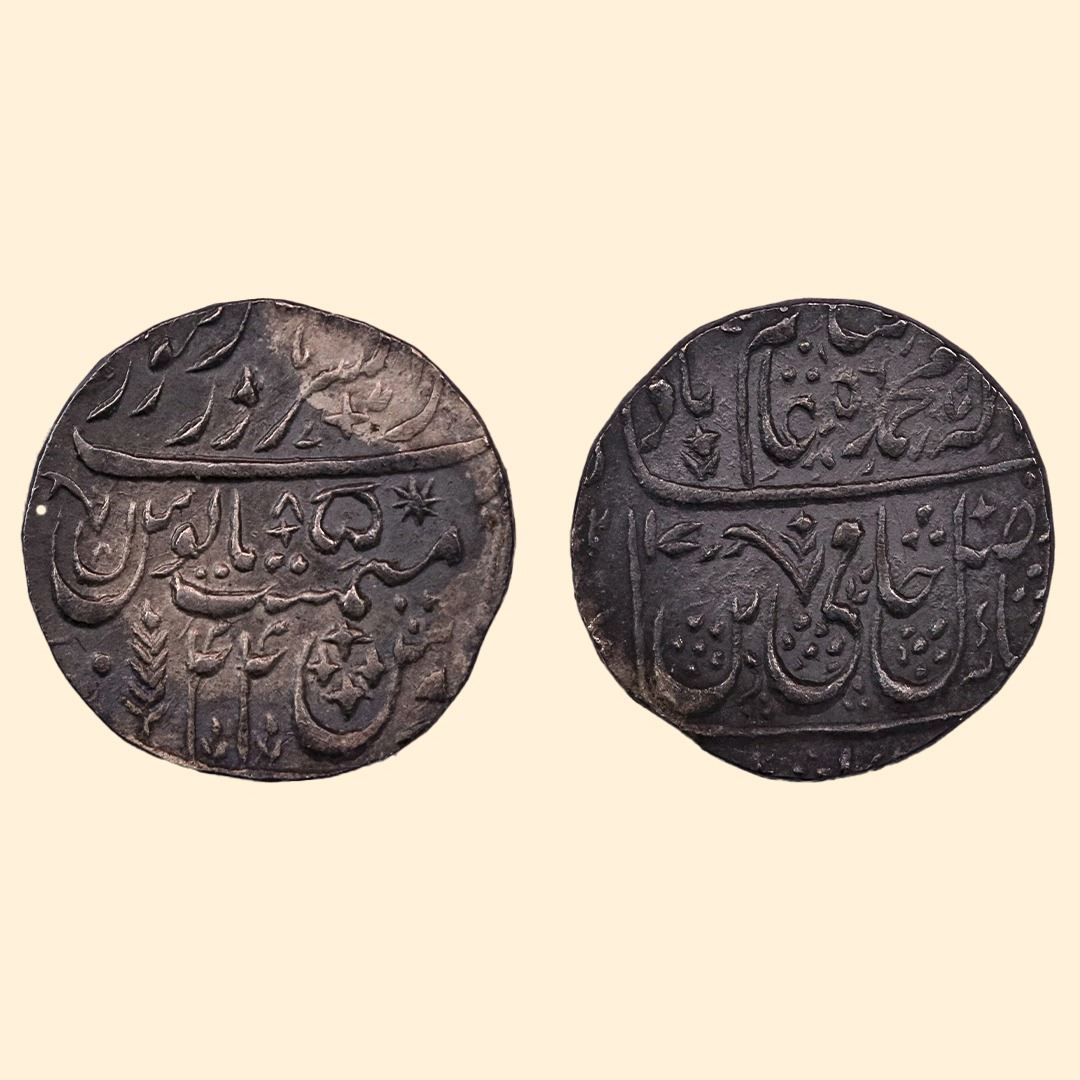 Maratha Confederacy, Silver Rupee, 11.07gms, Dar-us-Sarur Saharanpur Mint, in the name of Shah Alam II, RY 44, complete mint name with epithet on rev top area. (KM # 308)