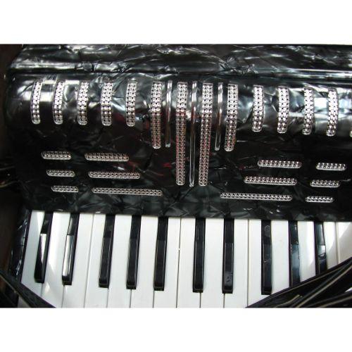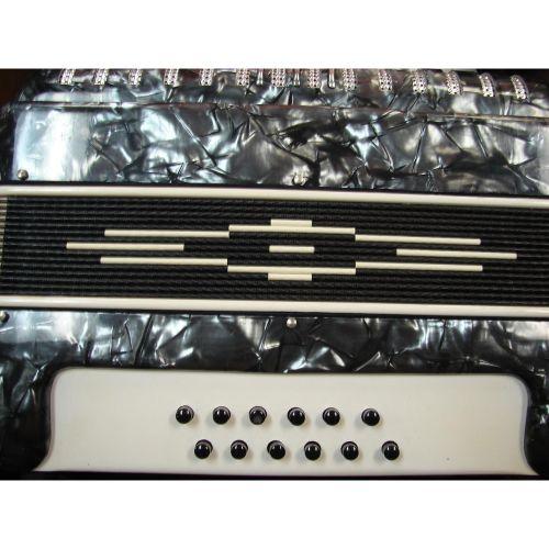 New Old Stock accordion. Gray Marbelized case with chrome accents. 13/12/7" 12/25. Made in Italy.