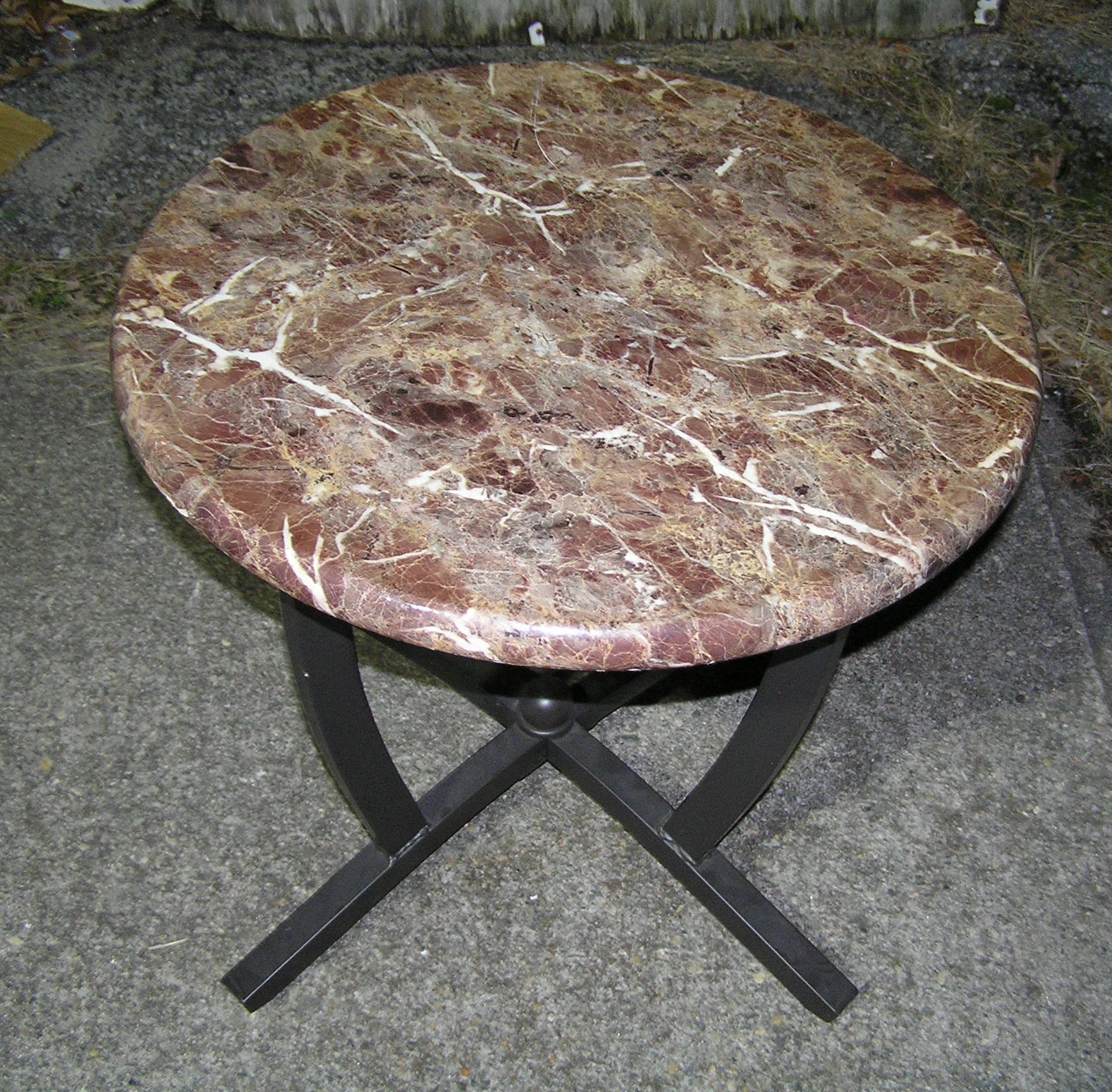 Marbelized end table 23 inches round all metal base by King Tree Hand Craft Inc. of California customer to arrange pickup or delivery of this item est. value 150.00-200.00