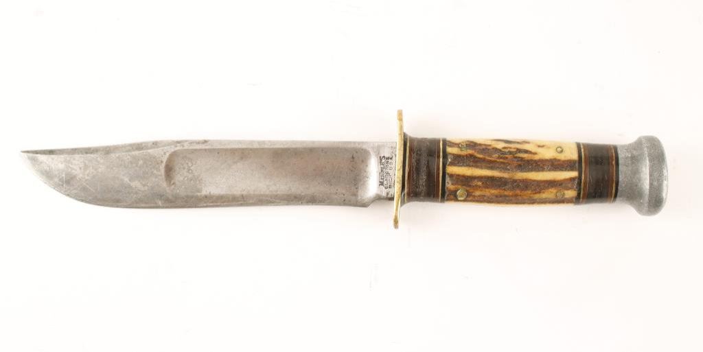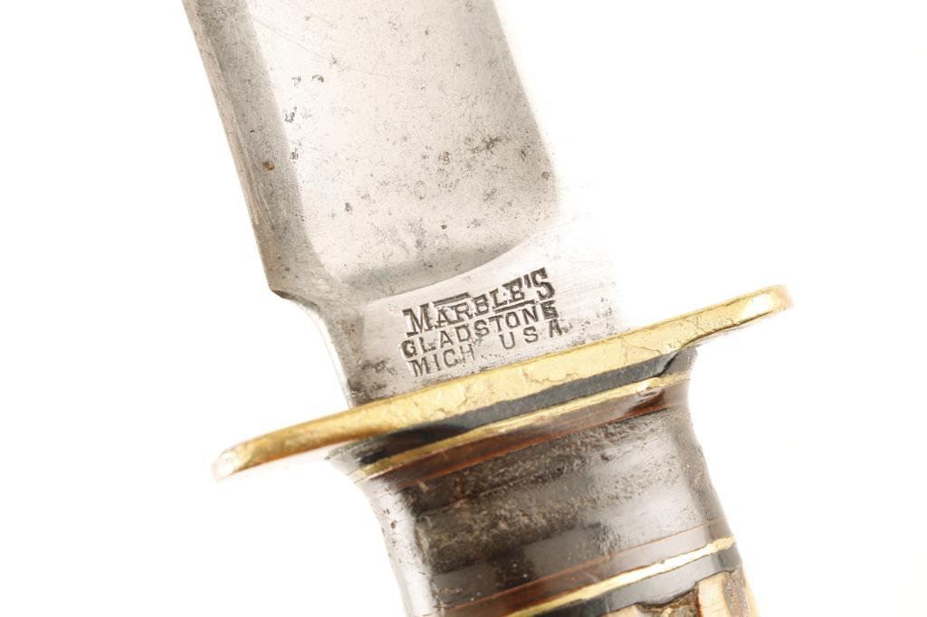 Marble’s (Gladestone, Mich.) knife with stag grip; overall good condition; no sheath. Est.: $75-$150.
