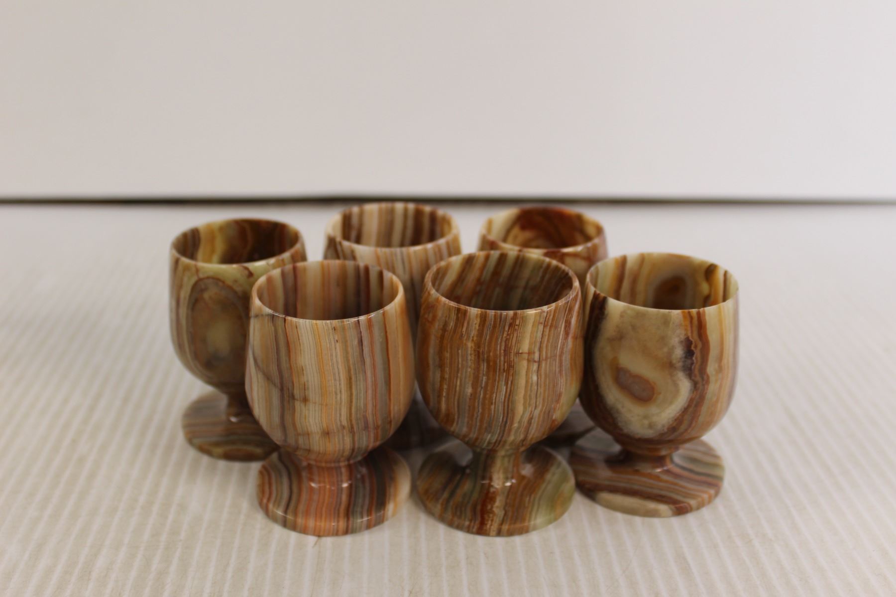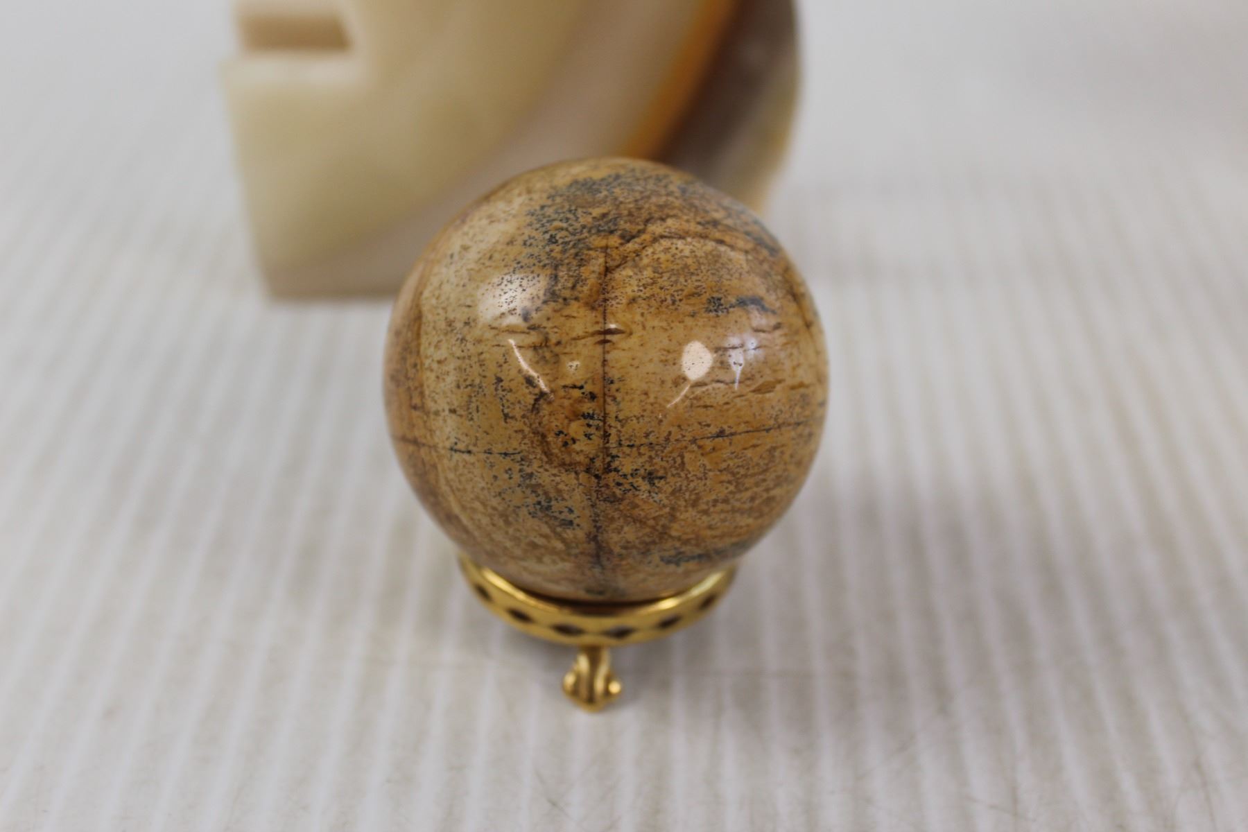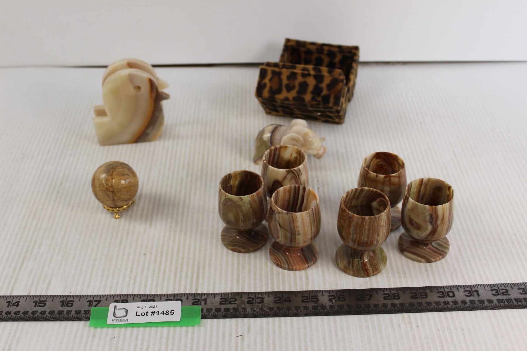 Marble Bird Napkin Holder, Marble Elephant in Box, (6) Marble Shot Glasses, Marble Ball on Stand