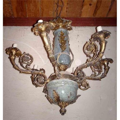 The marble brass chandelier to be assembled at destination. Buyer to rewire the chandelier using US standards wiring.