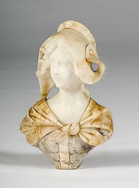 Continental, possibly Dutch, 19th century, unsigned, in shades of white marble. Probably purchased on a Grand Tour by the Schnull-Rauch family during the first quarter of the 20th century; 17" high.