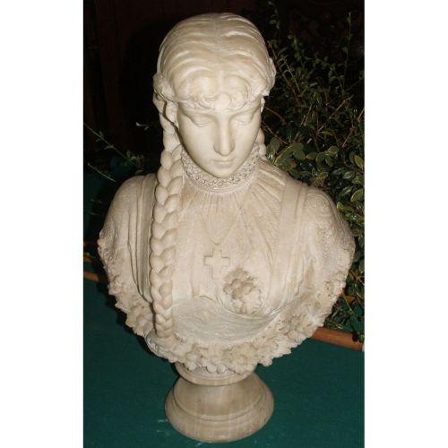 Unsigned. European, Victorian. Late 19th century white marble. 23" high