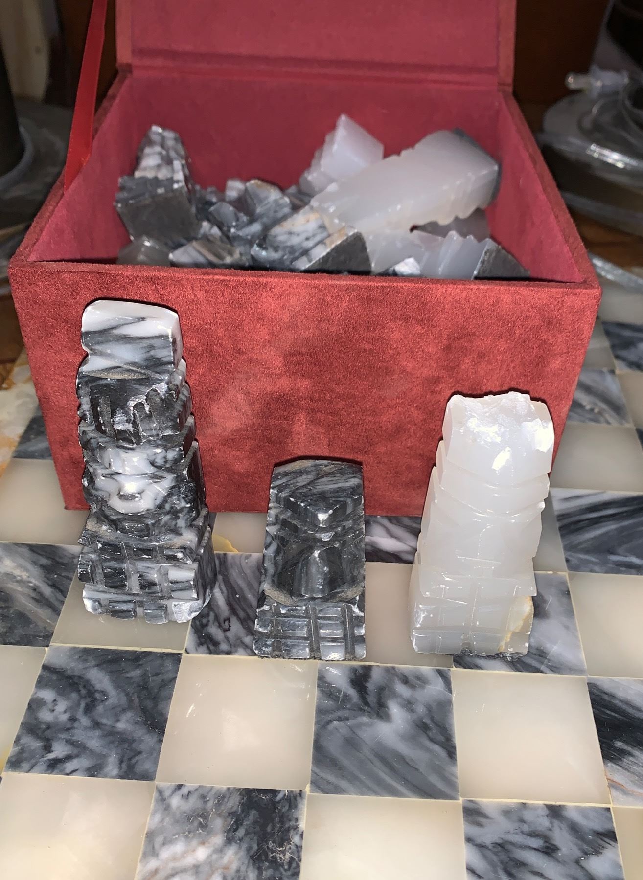 Marble Chess Board, complete but one man needs to be repaired