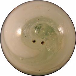 Ground Pontil Transition. White and clear handgathered marble. Nice "9" on the top. Small subsurface moon on the top. Germany, circa 1850-...