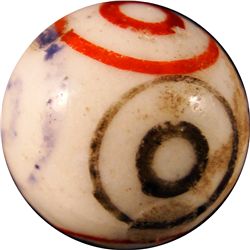 Handpainted glazed China. Bullseye design. Very nice. Germany, circa 1850-1920. 19/32". Mint (9.8).