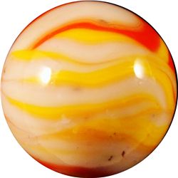Beautiful four-color Flame Swirl. White, yellow, orange, light salmon. Exceptional marble. Cambridge OH, circa 1927-1929. 5/8". Mint (9.8).