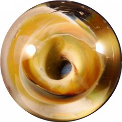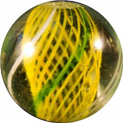Yellow Latticinio Core Swirl. Beautiful marble. A couple of tiny pinpricks. Germany, circa 1870-1920. 29/32". Mint (9.3).
